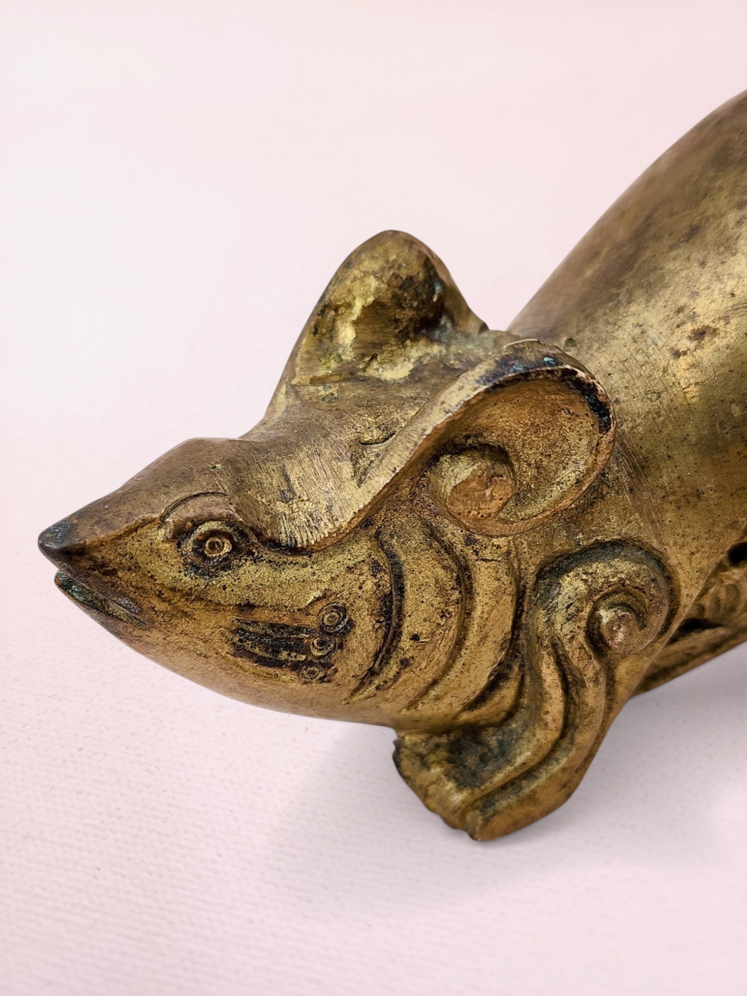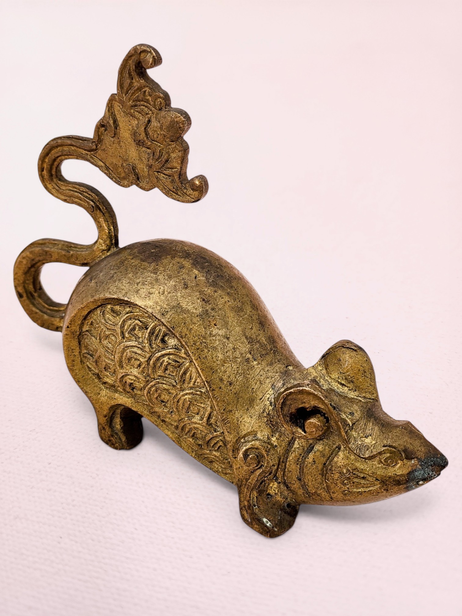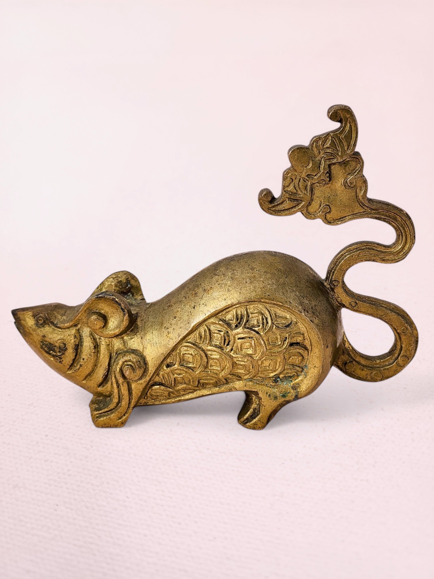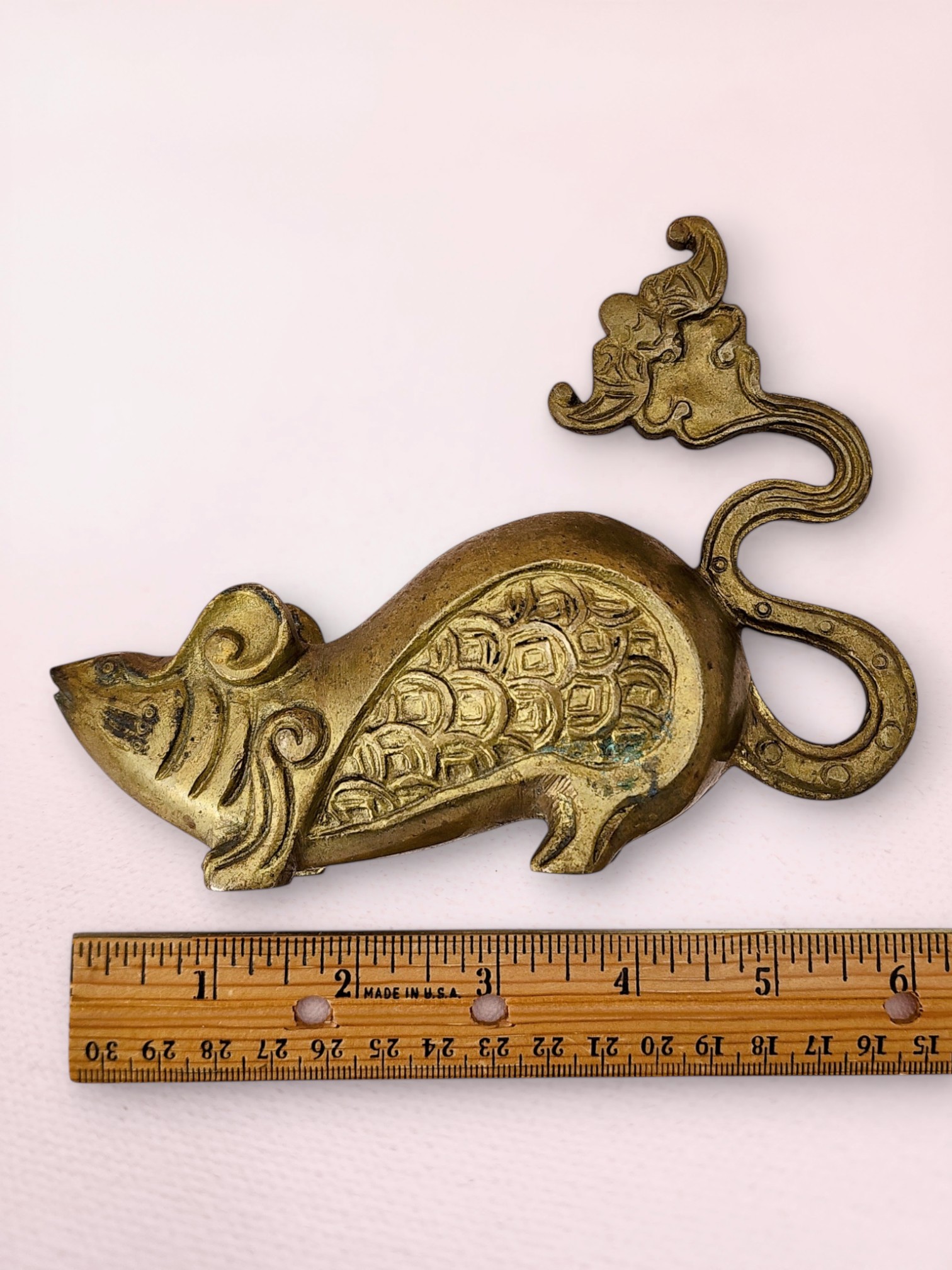 Vintage Feng Shui Money Rat – Brass Wealth Symbol with Chinese Coins