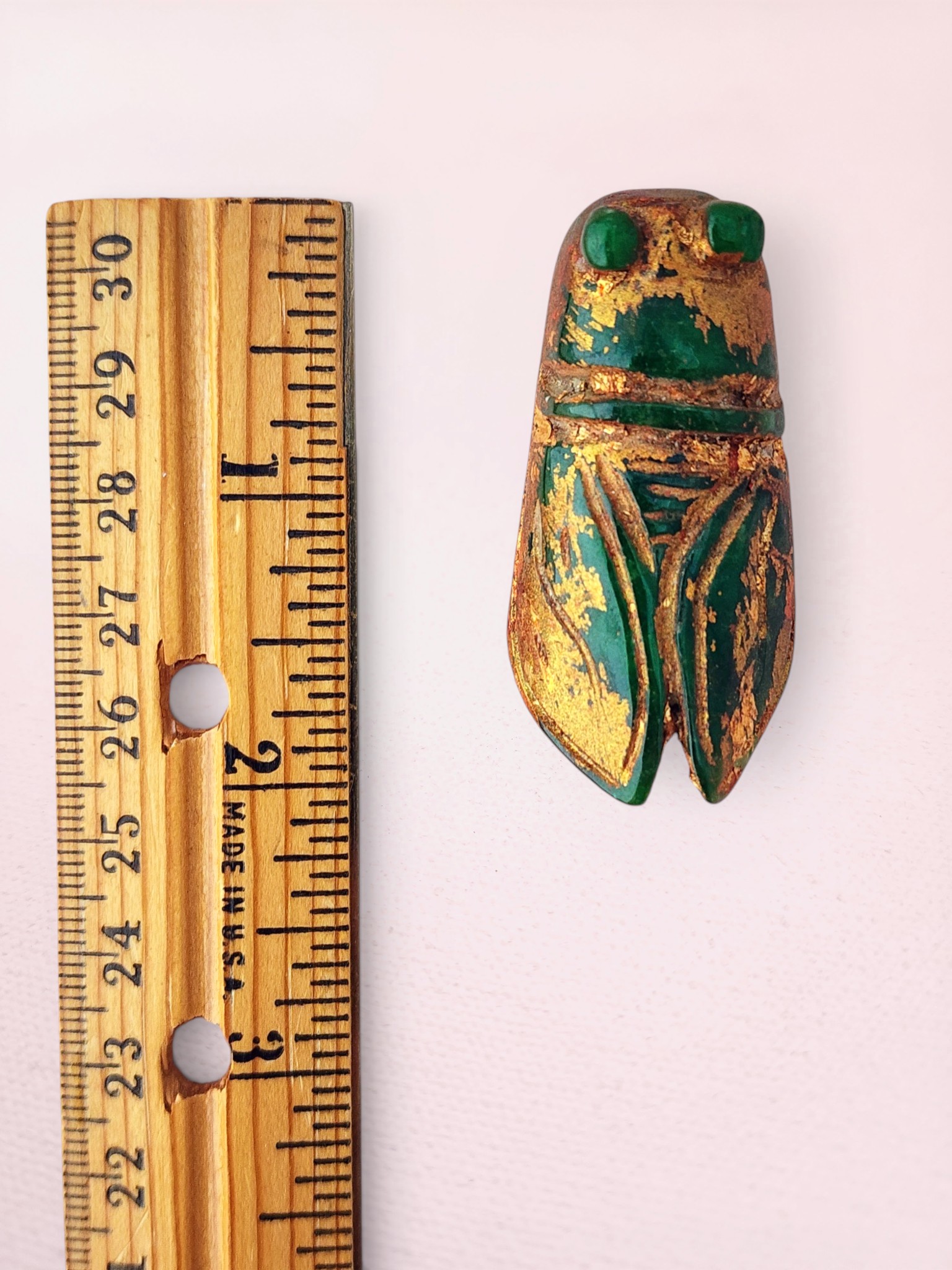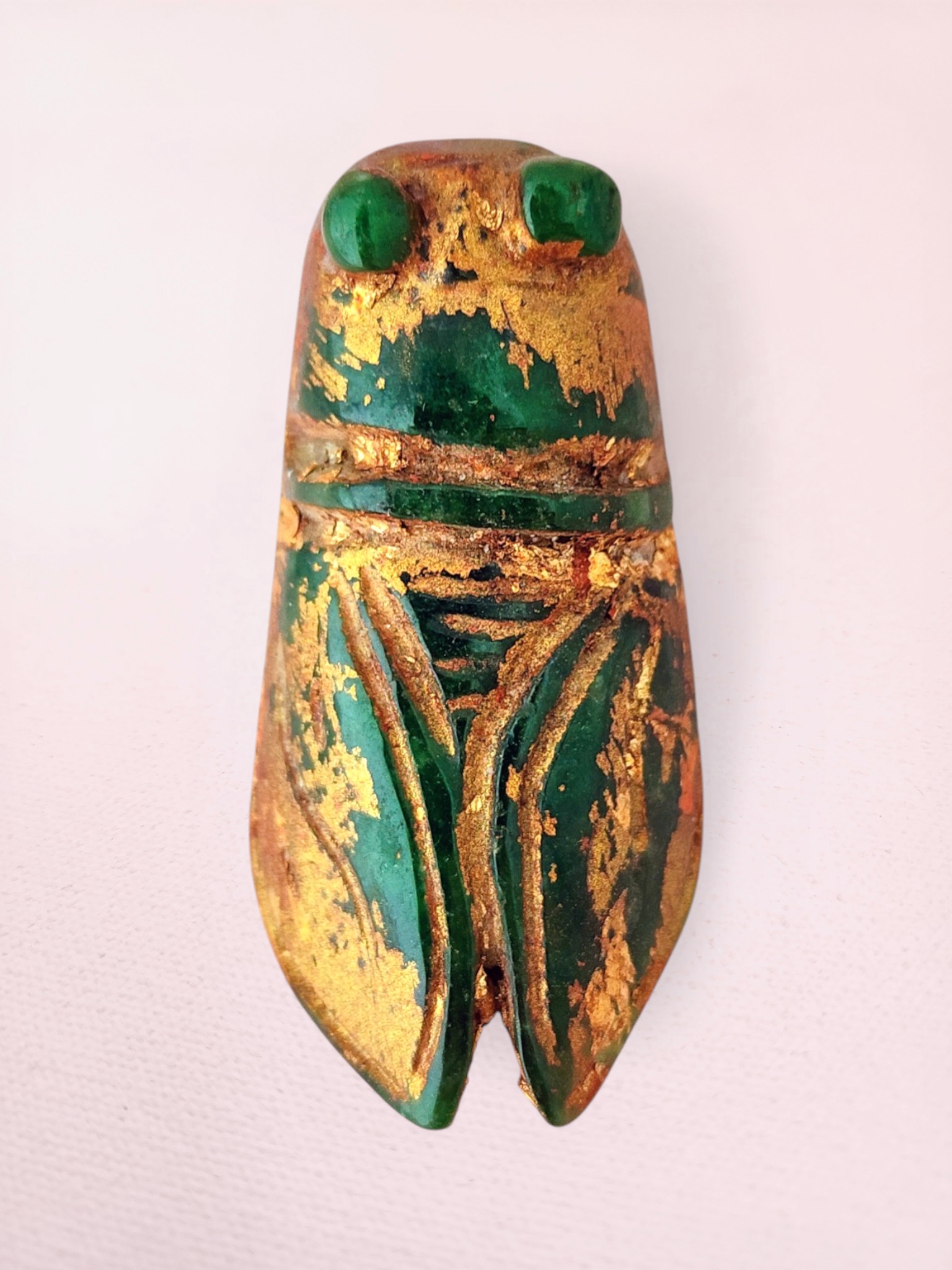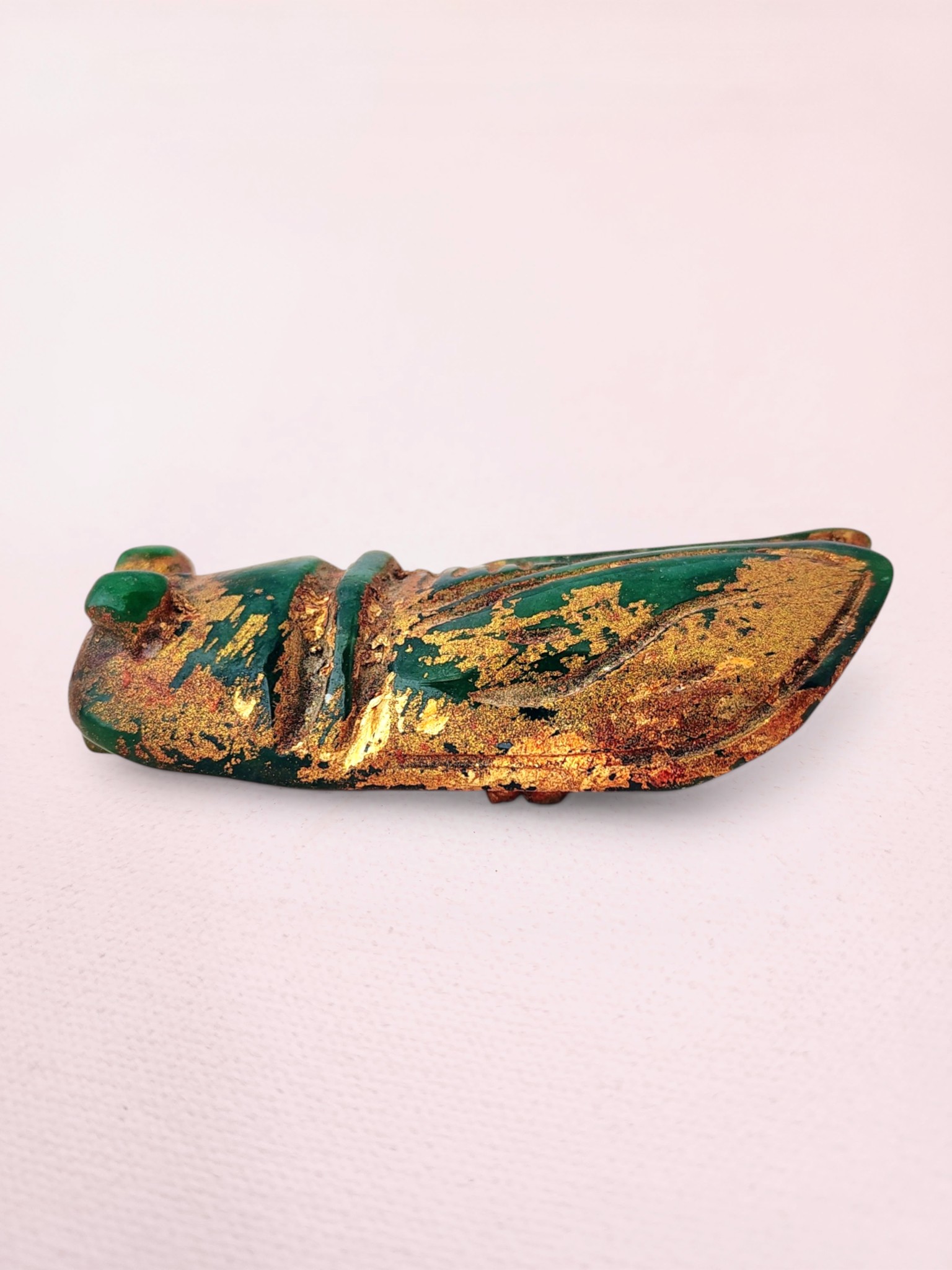 Green Stone Beetle Amulet with Gold Paint from Thailand | Luang Pu Thuat Scarab