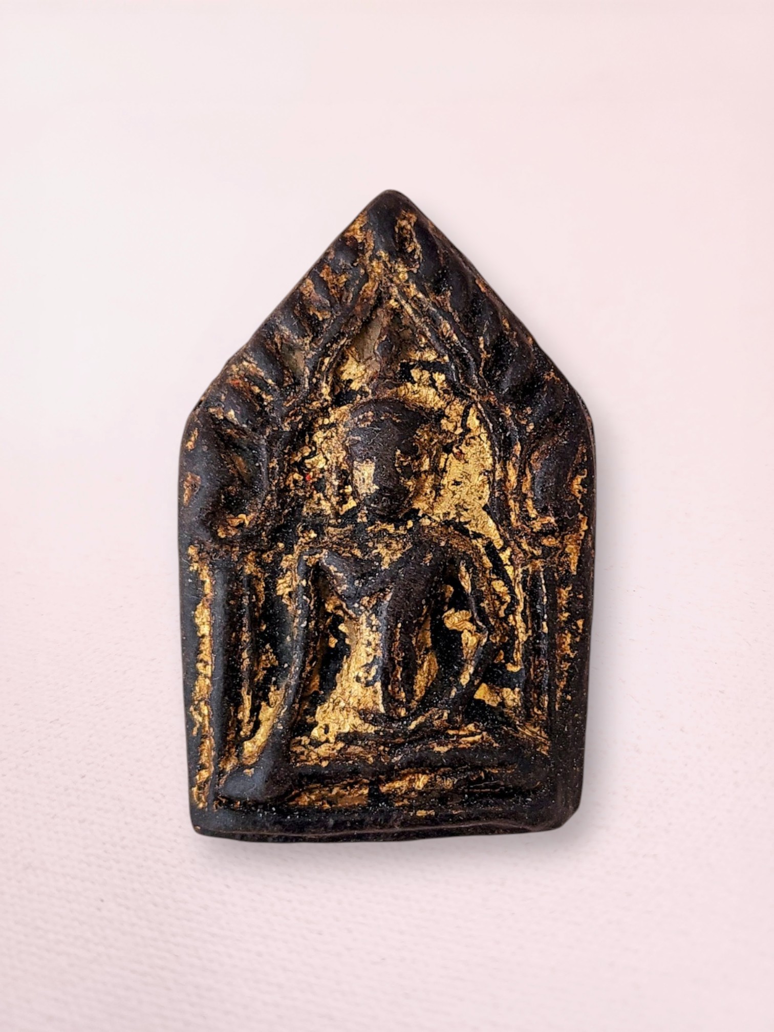 Pra Khun Phaen Clay Amulet – Sacred Thai Metta Charm with Gold Foil
