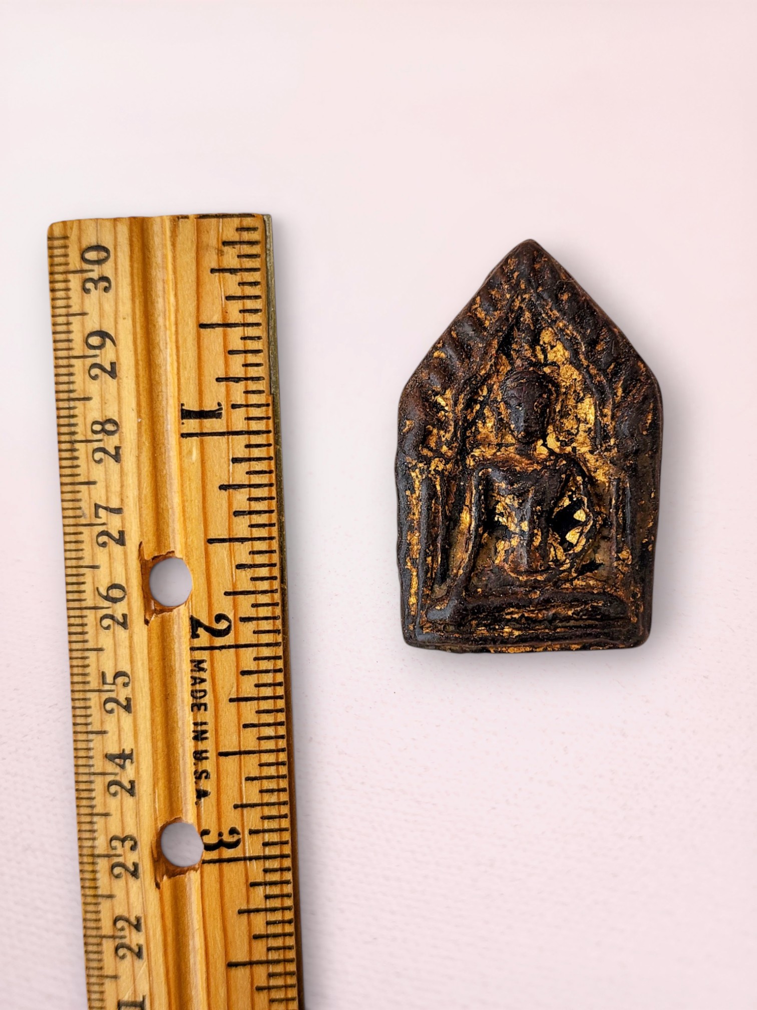 Phra Khun Paen Amulet with Gold Leaf | Vintage Thai Buddhist Pendant