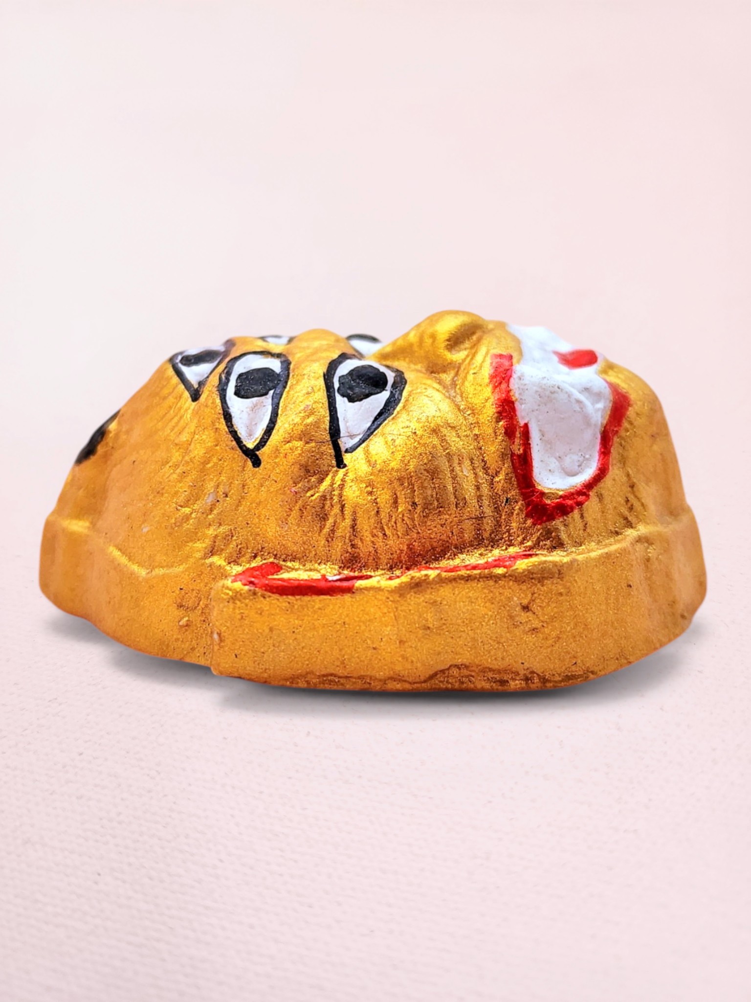 The front displays five penetrating eyes arranged in traditional formation – one centered on the forehead and four positioned strategically across the face, symbolizing the Five Precepts as well as omniscient awareness and spiritual insight. Four prominent ears extend from the sides, representing the Brahmaviharas (“divine abodes” of loving-kindness, compassion, sympathetic joy, and equanimity) as well as the ability to hear and respond to devotees’ prayers.