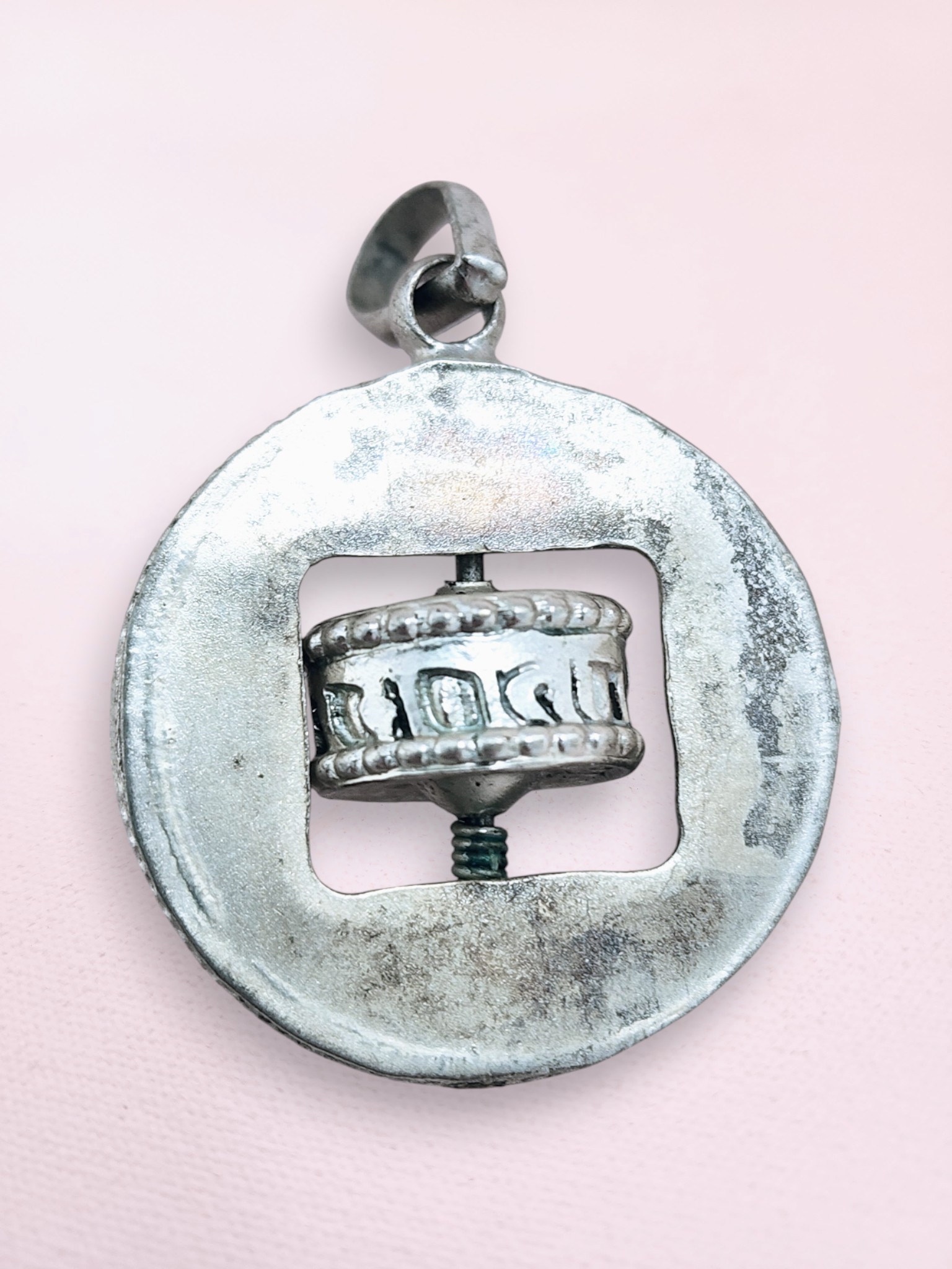 Spinning Tibetan Prayer Wheel Necklace Pendant – Inscribed “Om Mani Padme Hum” Mantra