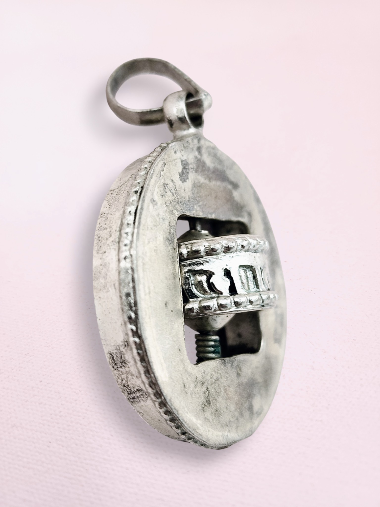 Worn as a necklace, this pendant is more than a piece of jewelry; it is a personal spiritual tool and protective amulet. In Tibetan tradition, spinning the prayer wheel activates the mantra’s energy, spreading compassion, wisdom, and positive vibrations to oneself and all beings.