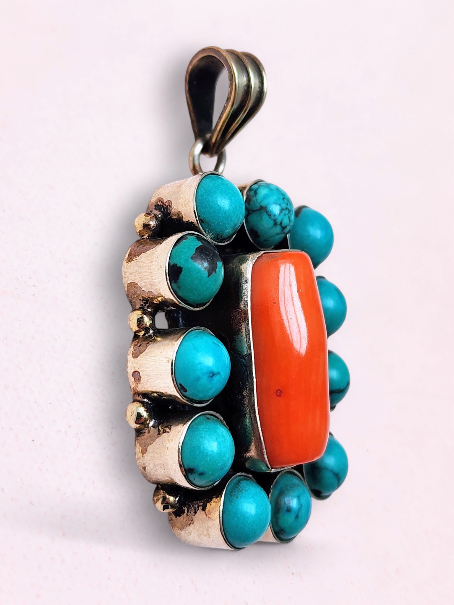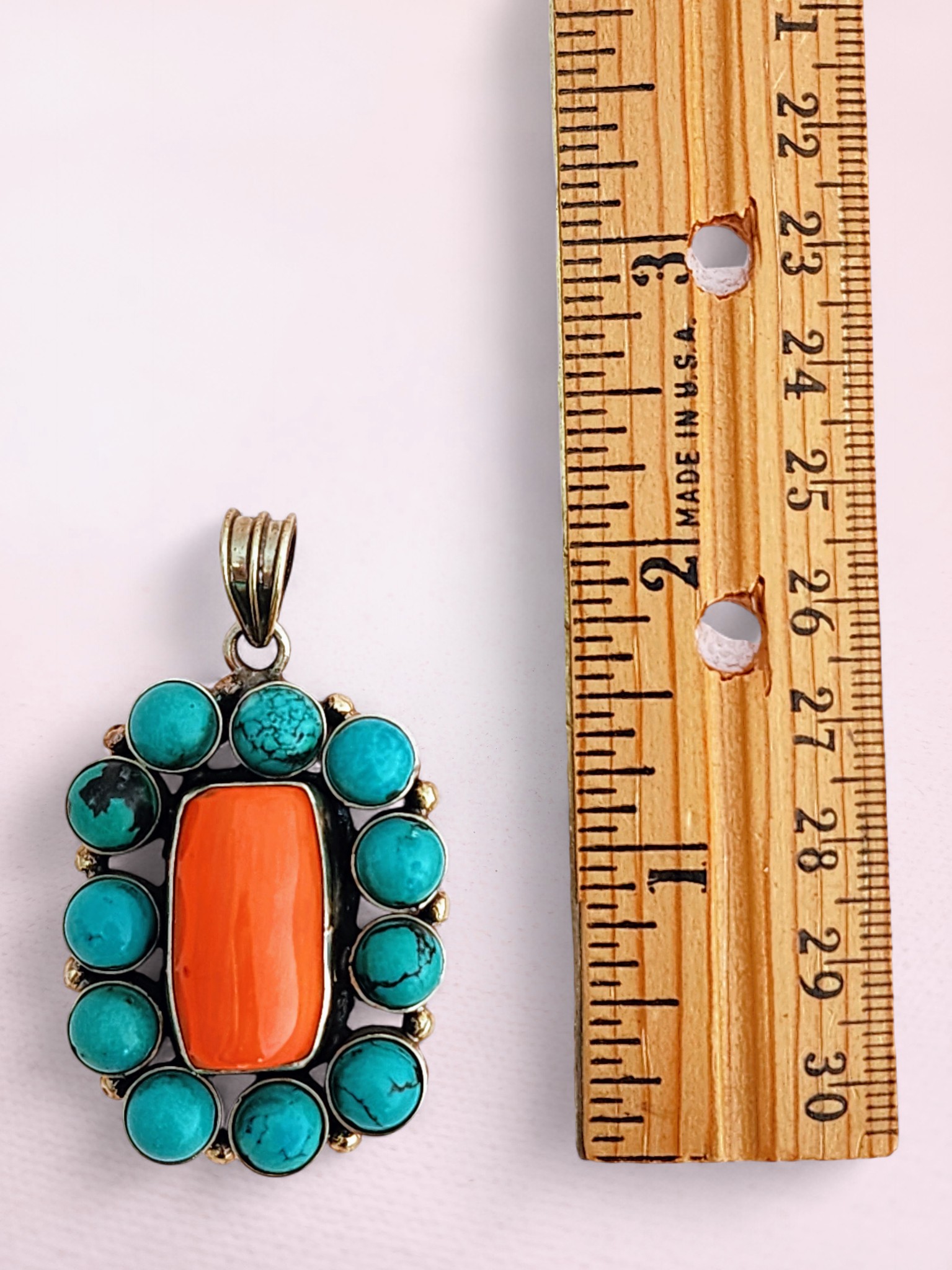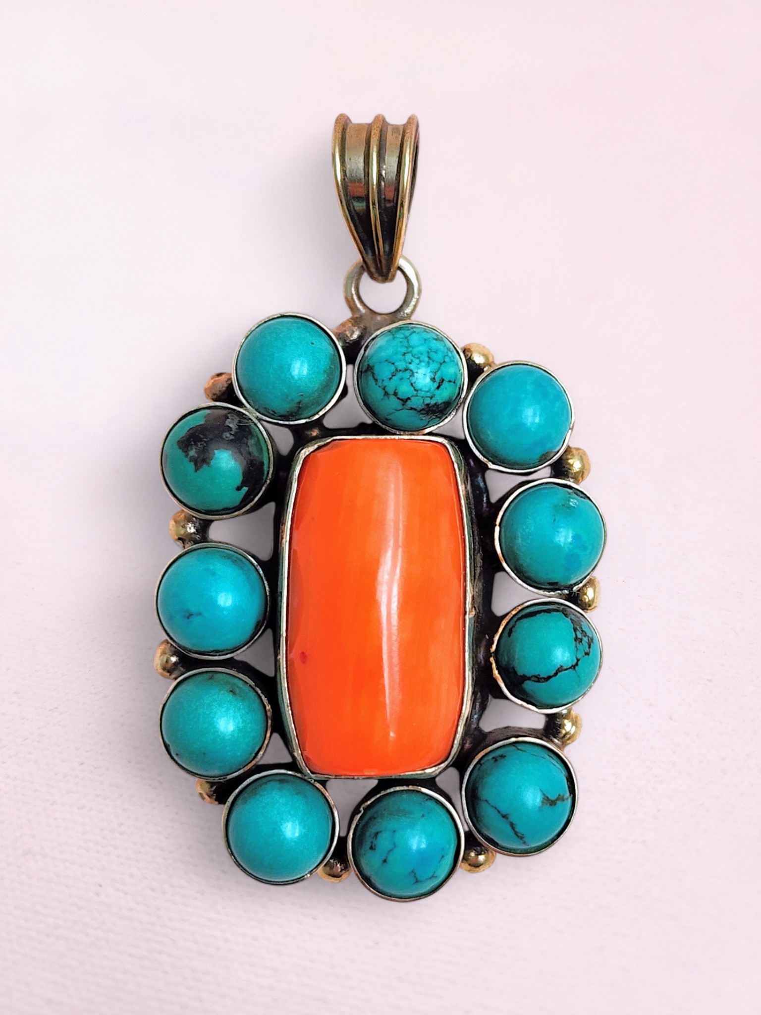 Tibetan Coral & Turquoise Silver Necklace Pendant | Authentic Handcrafted Gemstone Jewelry